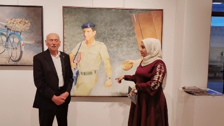 وما زاد من وهج هذا العرض أنها ترأست قاعة العرض لوحة «الوداع» في حين كان أقدم اللوحات المعروضة بعنوان «الممرضة» تعود لعام 1972 أما أقلها عمراً كانت لوحة «طعن الكرب» تعود لعام 1992، كما تضمن العرض لوحة بعنوان «الفلاح» تعود لعام 1986 ولوحة «الملايات» لعام 1988، ولوحة «العطش» العائدة لعام 1979، إضافة الى مجموعة لوحات بروتريت لشخصيات المجتمع العراقي الرائد أمثال (وداد الاورفلي، وبدر شاكر السياب)، وجميع المدارس التي استخدمت في رسالتهِ الفنية كانت في لوحاتهِ المعروضة من المدرسة الواقعية، وتعد أقرب لوحاتهِ لنفسهِ هي لوحة «الاحتلال» رغم انهُ يعد كل لوحاته هي قريبة من نفسه لانها جسدت حقب تاريخية مر بها الفنان وعايشها، أما الان فبعد 85 عاما فهو يخوض مرحلة الترميم للوحاتهِ الفنية الرائدة ويعمل على جمع لوحاتهِ لترميمها لان الفنان يمر بعدة مراحل فبعد الإبداع والريادة تبدأ مرحلة الترميم وهذه تعد أعلى مراتب الخبرة الفنية للفن التشكيلي.