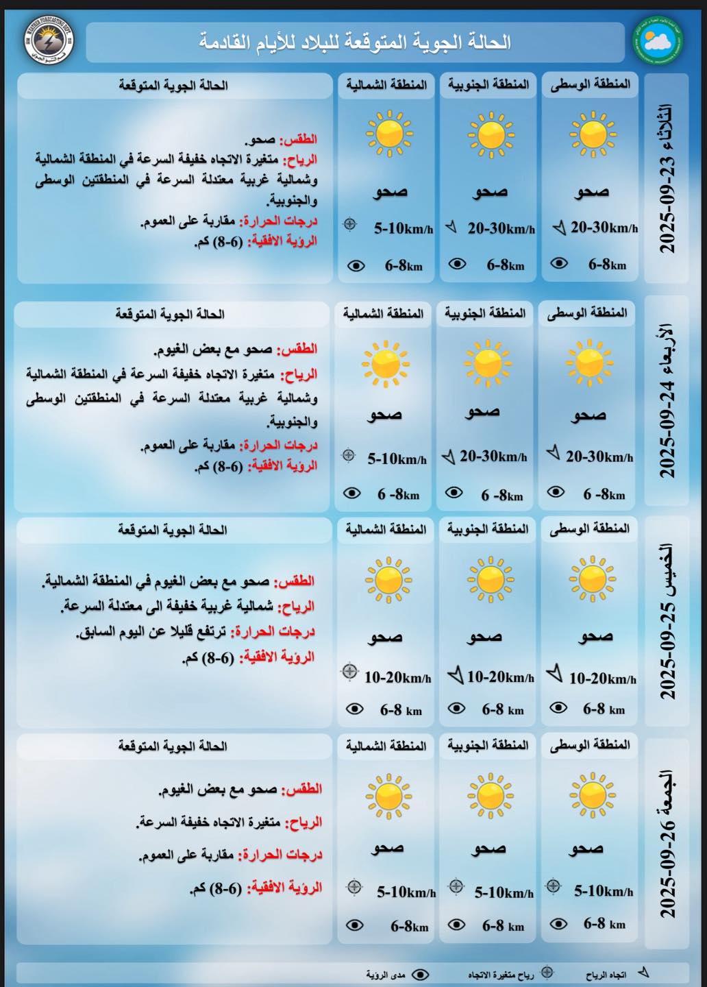 توقعت الهيئة العامة للأنواء الجوية والرصد الزلزالي التابعة لوزارة النقل، إن يكون طقس اليوم الثلاثاء صحواً، ودرجات الحرارة غير مستقرة. وقال بيان تلقته (الزمان) أمس إن (طقس اليوم الثلاثاء سيكون صحواً، ودرجات الحرارة مقاربة لليوم السابق في عموم البلاد)، وأضاف إن (درجات الحرارة العظمى تسجل في السليمانية 30 ودهوك 31 وأربيل32 ونينوى والأنبار وكركوك 34 وبغداد وديالى وكربلاء المقدسة 36 وبابل والنجف والديوانية 37 وواسط وميسان وذي قار والمثنى 38 والبصرة 39 درجة مئوية)، وأوضح البيان إن (طقس يوم غد الأربعاء سيكون صحواً). فيما أكد الفلكي ماجد أبو زاهرة إن الاعتدال الخريفي بدأ أمس، حيث تقع الشمس على خط الاستواء وتبدأ بالتحرك ظاهريًا نحو الجنوب، معلنة أول أيام فصل الخريف فلكيًا. وأشار أبو زاهرة في بيان تلقته (الزمان) أمس إلى إن (طول النهار والليل أصبح متقاربًا تقريبًا 12 ساعة لكل منهما، مع ميل محور الأرض وحركتها حول الشمس المؤثرة على الظواهر الطبيعية)، مؤكدًا إن (الاعتدال يحدد مواعيد الفصول ويؤثر على الحياة البيئية والزراعية وحركة الطيور والأقمار الصناعية، وسيستمر فصل الخريف حتى الانقلاب الشتوي). شهد قضاء تشايكارا بولاية طرابزون التركية، تساقطاً كثيفاً للثلوج، ما أدى إلى تعليق الحركة في بعض الطرق. وأعلنت السلطات المحلية أمس (إنقاذ 8 أشخاص علقوا بسبب العاصفة الثلجية). وكانت مواقع التواصل الاجتماعي، قد تداولت صوراً توضح حجم الثلوج وسماكتها في المنطقة.