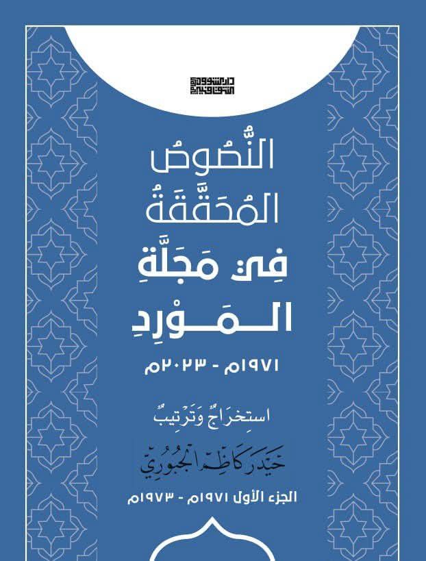 وعن سلسلة " دراسات وتحقيق " التي تصدرها دار الشؤون الثقافية العامة وزارة الثقافة والسياحة والآثار صدرت حديثاً كتاب " النصوص المحققة في مجلة المورد -- ١٩٧١ م -- ٢٠٢٤ م " إستخراج وترتيب الباحث والكاتب حيدر كاظم الجبوري