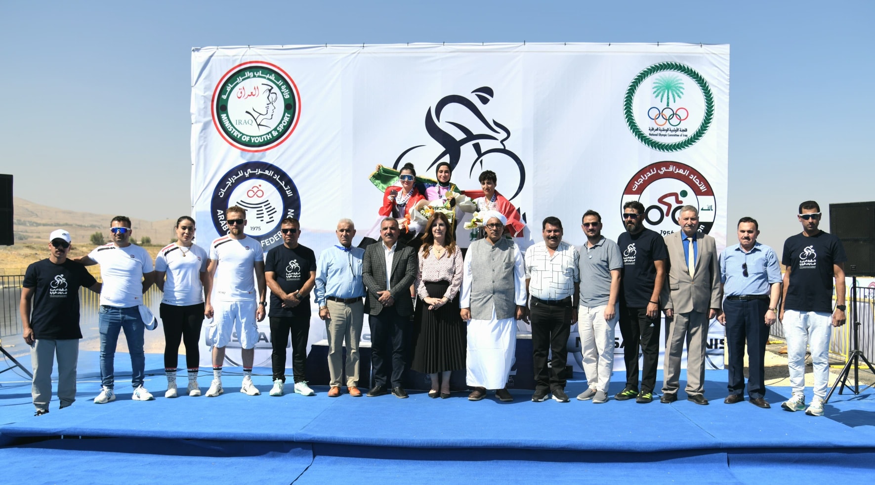 وتبادل توزيع الميداليات وباقات الورد على المتوجين كل من عضو المكتب التنفيذي للجنة الأولمبية ليلى محمد أمين، والامين العام للاتحاد العربي اشرف محمد سيد، ومشرف البطولة خالد كوكاش ، ورئيس الاتحاد العراقي للدراجات علي حميد ونائب رئيس الاتحاد كاظم دليح.ومدير الأمانة المالية أحمد صبري.