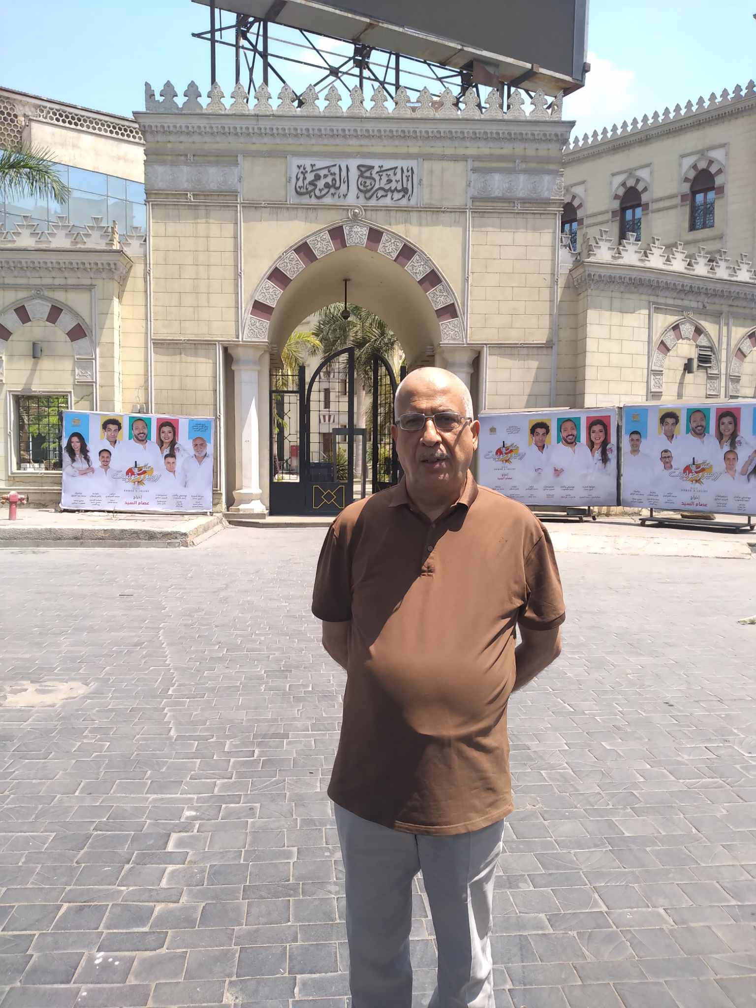 في اليوم الثاني، كنت على موعد مع زميلي وصديقي العزيز أركان الزيدي، (وهو رسام كاريكاتير، إبن الفنان المسرحي المعروف كاظم الزيدي وعمه الفنان عبد المرسل الزيدي)، مقيم في مصر منذ عشر سنوات، الذي جاءني إلى الفندق، حدود الساعة العاشرة صباحاً، وخرجنا سوية لنتناول الفطور، حيث أصطحبني إلى أحد المطاعم الشعبية، القريب من الفندق، في منطقة (العتبة) وكان الفطور عبارة عن «فول وطعمية وبعض المقبلات المتممة معها» (أكلة البسطاء الأولى في المناطق الشعبية)، التي يحبها المصريون كافة، كنت أسمعها فقط من خلال الأفلام المصرية، وكان البائع لطيفاً جداً معنا، في إستقبالنا وخدماته ولباقته المهنية في الكلام، التقطنا بعض الصور ونحن في المطعم، وبينما يتناول أركان دوائه المزمن.. سألني أين تحب نذهب الآن، فقلت له أي مكان فيه أماكن ثقافية وفنية وأثرية، مكتبات، متاحف، أي «حاجة كل حاجة»، سرنا على بعد مسافة قريبة فكانت بوجهنا بناية عليها إعلانات كبيرة الحجم، فتبين أنها، المسرح القومي للأطفال (مسرح مدبولي للأطفال)، وكان يسمى قديماً مسرح «الميتروبوليتان، وقد قررت الحكومة المصرية «وقتذآك» أن تطلق عليه إسم الفنان القدير عبد المنعم مدبولي، تكريماً له ولجهوده الكبيرة في مجال ميدان المسرح، بعدها ذهبنا إلى سوق «الأزبكية»، وهو شبيهة بشارع المتنبي في بغداد، أو على غراره، ولكن للأسف كانت محلاته مغلقة لكون يوم الأحد يصادف عطلة إسبوعية لهم، إلا من بعض المحلات القليلة كانت مفتوحة، ولكن لحرارة الطقس الملتهبة جداً، كانت خطواتنا تتسارع إلى أماكن أخرى، فيها بعض الظل، بعدها بمسافة قليلة كانت هنالك بناية أخرى، تبين أنها (المسرح القومي)  وهو خاص للأطفال أيضاً، ومن ثم (مسرح العرائس للأطفال)، وهو مخصص لفن الدمى المسرحية، وقد بني في عهد الرئيس جمال عبد الناصر، لغرض الإهتمام وتطوير هذا النوع من الفنون لما له من تأثير في ثقافة المجتمع والطفولة.