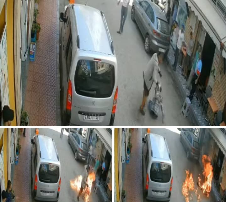 فيما تم نقل الضحية إلى المستشفى لتلقي العلاجات الضرورية.واضاف بلاغ النيابة العامة ان الأبحاث ما تزال جارية في الموضوع، وسيتم ترتيب الآثار القانونية المناسبة على ضوء ذلك فور انتهائها .وقد انتشر فيديو الاعتداء على نطاق واسع بعد مشاركته الكثيفة من نشطاء التواصل الاجتماعي ، واستأثر باهتمام الرأي ، واصبح قضية رأي عام بعدما تعاطف المغاربة مع الفنان الضحية الذي لا حول له ولا قوة .الضحية كان يجلس بإحدى مقاهي مدينة الحسيمة ، وفوجئ بالجانب يجره من كرسيه و يسحله للخارج ثم يسكب عليه مادة قابلة للاشتعال ويشعل النار على جسد الفنان ، ثم ينسحب بهدوء وكأن شيئا لم يقع .الفيديو المذكور يهز المشاعر ولا ينصح بمشاهدته لذوي القلوب الضعيفة لكونه يحتوي على مشاهد مؤثرة جدا ، وقد طالب رواد المنصات الاجتماعية بحذفه من المنصة لخطورته .كل الانظار متجهة نحو استئنافية الحسيمة لمعرفة مصير الجاني الذي اعتدى بهذه الطريقة الوحشية على شخص معاق لا يستطيع الدفاع عن نفسه .الملف لم يعرض بعد على المحكمة حتى تنتهي اطوار التحقيق ، لكن وحشية الفعل ، جعلت الجميع ينتظر الحكم باقصى العقوبات على الفاعل الذي اقترف جريمته بقلب الشارع العام وبكل برودة دم .