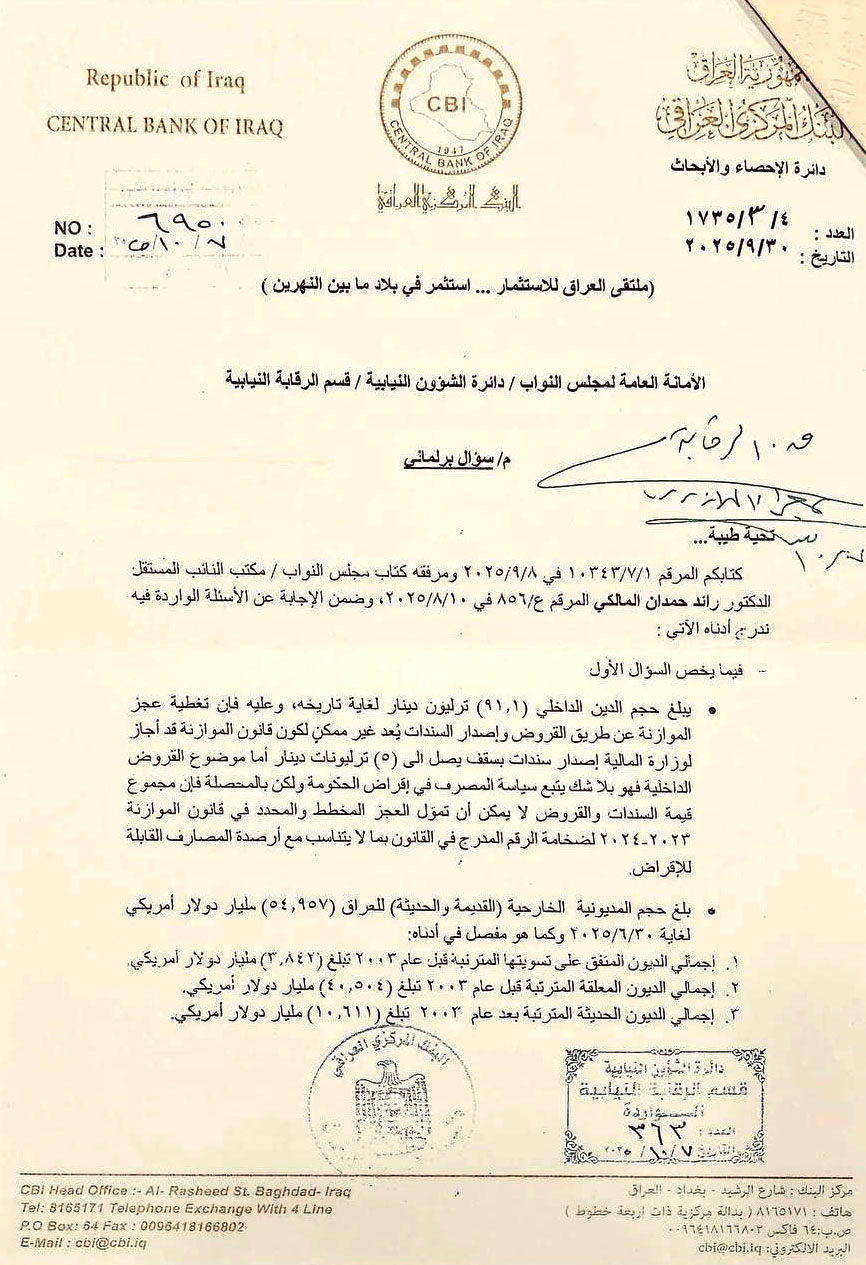 مديونية العراق ضمن الحدود الآمنة ولا تشكّل عبئاً على الإقتصاد