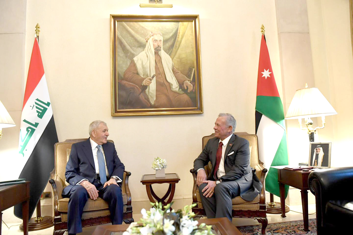 بحث رئيس الجمهورية عبد اللطيف جمال رشيد، مع العاهل الأردني الملك عبد الله الثاني، توسيع التعاون بين البلدين وجهود الحفاظ على استقرار المنطقة. وقال بيان تلقته (الزمان) أمس إن (الجانبين بحثا خلال اللقاء الذي جمعهما في العاصمة الأردنية عمان، متانة العلاقات الأخوية التي تجمع البلدين والشعبين الشقيقين، والحرص على توطيدها)، وأضاف إن (اللقاء تطرق إلى أبرز المستجدات الإقليمية، والجهود المبذولة لاستعادة الاستقرار في المنطقة، والعمل على دعم الحلول السلمية للأزمات بما يضمن سيادة الدول وأمن أراضيها)، وأشار البيان إلى إن (الجانبين تناولا سبل توسيع التعاون الاقتصادي والتجاري والاستثماري، وتطوير مشاريع الربط الكهربائي المشترك، وتسهيل حركة التجارة ونقل البضائع والأفراد بين البلدين)،وجدد رشيد (حرص بلاده على تعزيز العلاقات التاريخية والأخوية مع الأردن، ومواصلة العمل بما يخدم مصالح الشعبين الشقيقين، ويسهم في تحقيق الأمن والاستقرار والتنمية في المنطقة). من جانبه، أكد الملك عبد الله (أهمية البناء على ما تحقق من تعاون في مجالات الطاقة والتجارة والنقل والتكامل الاقتصادي)، وشدد على (ضرورة ضمان الالتزام بتطبيق اتفاق إنهاء الحرب في غزة بجميع مراحله، ووقف التصعيد بالضفة الغربية)، مشيراً إلى (أهمية تعزيز العمل العربي المشترك لتكثيف جهود الاستجابة الإنسانية في غزة، وإزالة القيود التي تعيق وصول المساعدات الإغاثية)، وحذر الملك عبد الله من (خطورة الإجراءات أحادية الجانب ضد الفلسطينيين، والاعتداءات على المقدسات الإسلامية والمسيحية في القدس)، وحضر اللقاء، نائب رئيس الوزراء ووزير الخارجية وشؤون المغتربين أيمن الصفدي ومدير مكتب الملك، علاء البطاينة ووزير الصناعة والتجارة والتموين يعرب القضاة ورئيس بعثة الشرف المرافقة للضيف، والوفد المرافق للرئيس العراقي. ووصل رشيد، إلى العاصمة الأردنية عمان أمس، في زيارة رسمية تبحث التعاون بين البلدين، حيث كان في استقباله، ملك الأردن وعدد من المسؤولين الأردنيين.