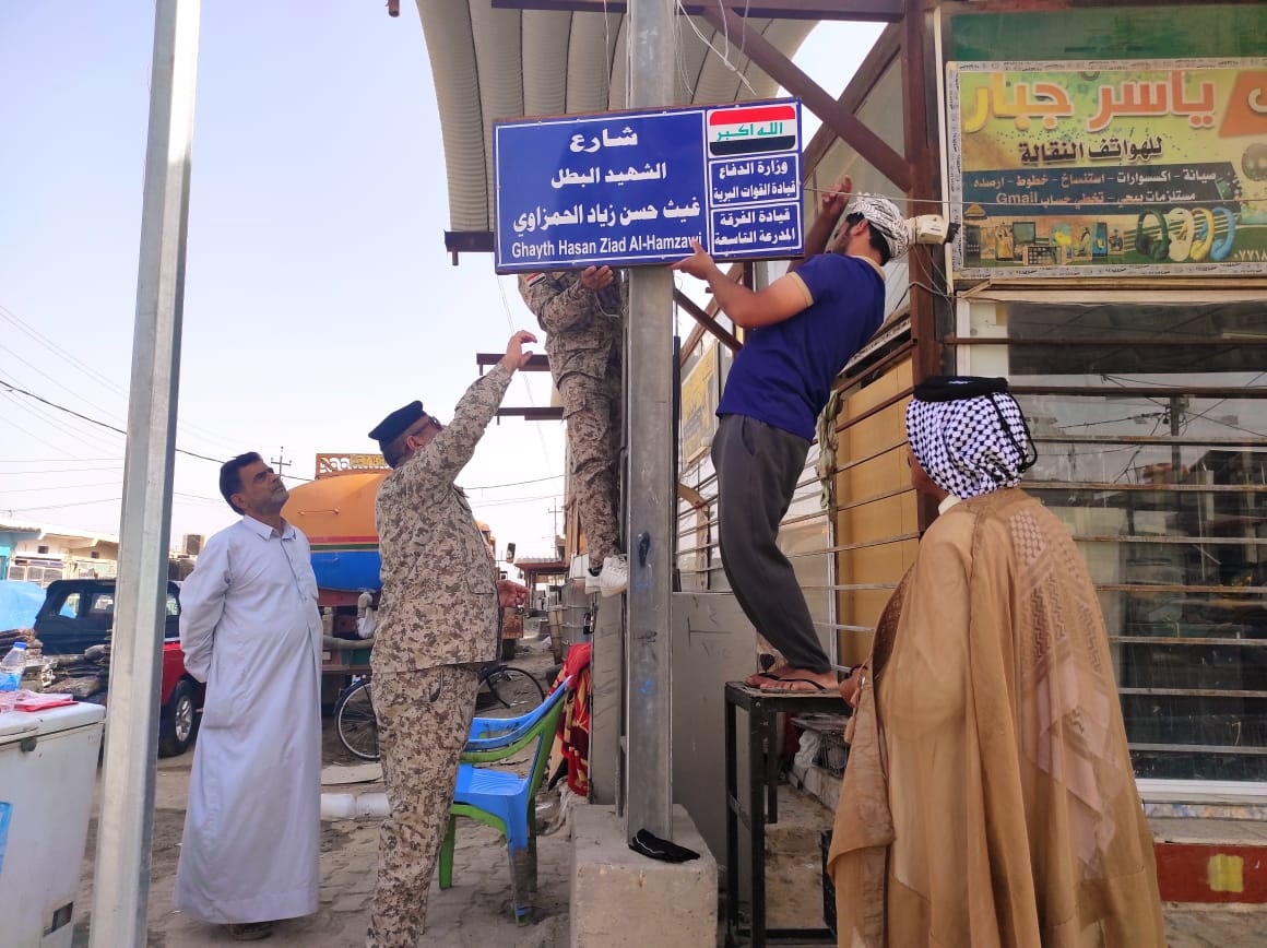 - استطيع القول باننا في الفرقة المدرعة التاسعة الوحيدين الذين استحصلنا الموافقات الرسمية وعملنا بجهود ذاتية لاطلاق تسميلا شوارع بمختلف المحافظات باسماء الشهداء حتى تتزين تلك الشوارع باسماء المضحين الابطال في ذي قار وواسط وميسان والبصرة والنجف وكربلاء والديوانية بالتعاون مع مجالس المحافظات