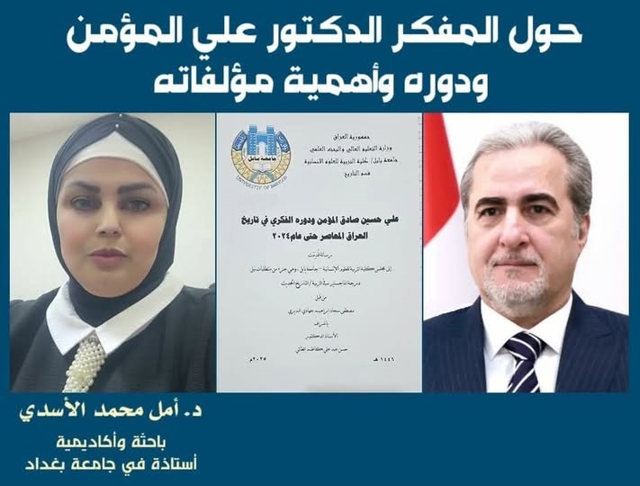 (*) المقال بالأساس جواب الدكتورة أمل محمد الأسدي، الأستاذة في جامعة بغداد، على أسئلة طرحها عليها الباحث مصطفى سجاد إبراهيم، للاستفادة منها في رسالته الماجستير المعنونة: «علي المؤمن ودوره الفكري في تاريخ العراق المعاصر»، والتي تمت مناقشتها في جامعة بابل في 18/9/ 2025.