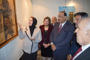 وتجولت (الزمان) في المعرض والتقت عدد من المشاركين، منهم النحات عبد الرحمن النعيمي، الذي قال (شاركت بمنحوتة عناق الخيول كونه رمز تراثي عراقي) وشاركت التشكيلية أية الطائي وهي أصغر المشاركين بلوحة شهريار وشهرزاد، اما التشكيلي إياد مراد من السليمانية فشارك بلوحة تمثال المتنبي بأسلوب تعبيري على الخشب يعده نوع من التحدي مع خامة الرسم، اما النحات وسام الدبوني فشارك بعملين، الملك كوديا ومسلة حمورابي، وشاركت التشكيلية رونق الدوري بلوحتين. وقالت التشكيلية سهام محمود المهد لوحتي تتناول أهمية نبو خذ نصر ملك بابل والذي أهدى الحدائق الى زوجته كونه يحبها وانا عمري تسعين سنة وما زلت متواصلة مع اللوحة وانا من صغري متاثرة بالفنان العالمي فان كوخ ولدي العديد من لوحاته).