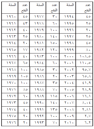 تعد البقع الشمسية الدليل الوحيد الذي يمكن رؤيته بالعين المجردة وذلك عند حدوثها تكون كبيرة الحجم يبلغ متوسط قطرها 10000 km بشكل فجوات غير منتظمة يمكن ان ترى بسهولة عند غروب الشمس ويمكن ان تستمر البقع عدة ايام تصل الى اسابيع دون ان تختفي البقع الشمسية تعرف على انها مناطق داكنة تظهر على سطح الشمس تكون درجة حرارتها اعلى من درجة حرارة سطح الشمس ناتجة عن الانفجارات على سطح الشمس من اندماج نووي هائل تندمج اربعة ذرات من الهيدروجين لتكون غاز الهيلوم يصاحب تكونها زيادة في نشاط الاشعاع الشمسي تمر بدورات تتراوح بين (7,11,30) والجدول التالي يوضح تكرار البقع الشمسية للمدة(1960-2010)اظهرت الدراسة التي اجريت على تكرار البقع الشمسية لمدة 50 عام من سنة (1960- 2010) ان تاثير البقع الشمسية على درجة الحرارة في العراق ضعيف جدا وذلك لتركز الفائض من الاشعاع الشمسي الناتج عن الزيادة في تكرار البقع الشمسية في المنطقة الاستوائية والمدارية الامر الذي ينشط التبادل الحراري بين مناطق الفائض الحراري في العروض الاستوائية والمدارية وبين مناطق العجز الحراري في المناطق القطبية وبعد تحليل الخرائط الطقسية المنشورة على موقع الادارة الوطنية للمحيطات والغلاف الجوي (NOAA) https://psl.noaa.gov اتضح في سنوات الزيادة لحدوث البقع الشمسية يزداد نشاط المنخفض الهندي الموسمي مما يعمق ارتفاع الرطوبة النسبية اضافة الى الشعور بارتفاع درجات الحرارة وفي السنوات الاقل حدوث للبقع الشمسية يتقطع ويضعف نشاط المنخفض الهندي الموسمي على العراق كما هو مبين في الصور الماخوذة من الموقع لادارة المحيطات والغلاف الجوي الامريكي