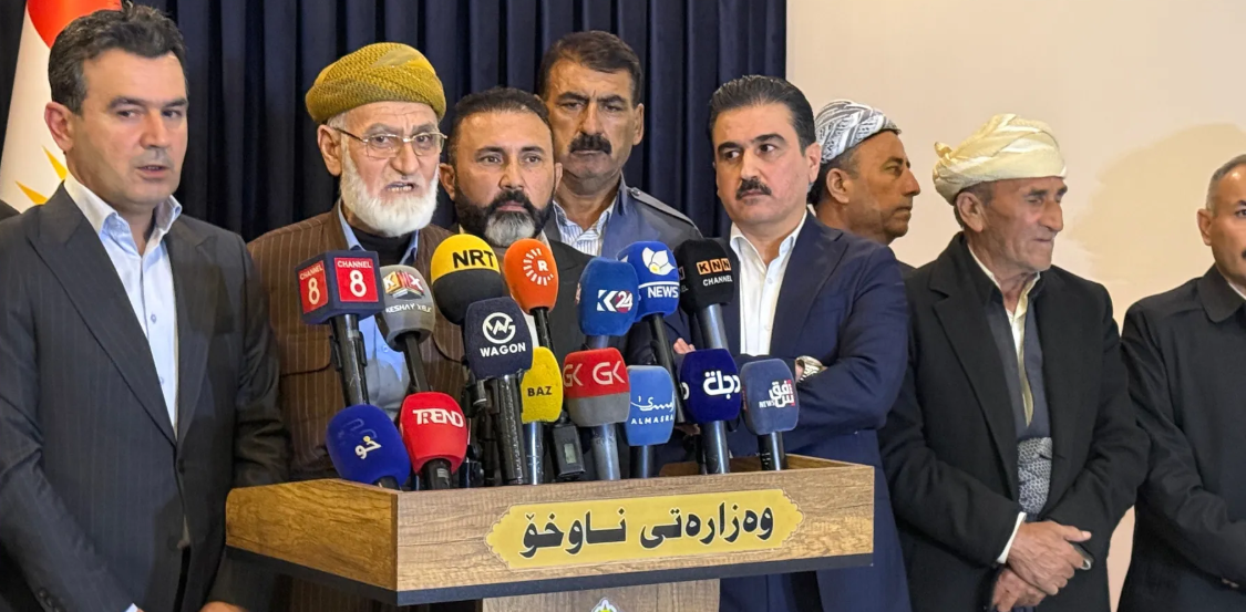 مشدداً على (عدم وجود أي أوامر قبض بحق أي من سكان القرية)، داعياً الأهالي إلى (العودة إلى منازلهم وممتلكاتهم دون خوف)، وأوضح خوشناو إن (إثارة الفوضى في القرية، هي محاولة عقيمة من قبل الأعداء لخلق البلبلة وإنساء الهجوم الإرهابي الذي استهدف حقل كورمور، والتقليل من شأن انتصارات حزب البارتي)، واستطرد بالقول إن (عشيرة الهركي والقوات الأمنية ستفشلان هذه المؤامرة معاً)، ولفت إلى إن (وصول القوات الأمنية للمنطقة، كان لحماية أرواح وممتلكات الأهالي ومنع أي أطراف خارجية من الإخلال بأمن المنطقة، وليس للاعتداء على المواطنين، ورفض كل الشائعات التي تحدثت عن إيذاء السكان أو التضييق عليهم)، وتابع إن (بعض الأشخاص يحاولون خلق الفوضى، لكنهم لا يمثلون الهركيين ولا يتحدثون باسمهم)، مبينا إن (المساعي مستمرة لتهدئة الأوضاع وإعادة الحياة إلى طبيعتها في القرية). في تطور، أعلن وجهاء عشيرة هركي في إقليم كردستان، حل الخلافات التي تخص قرية لاجان مع الجهات المعنية. وقال رئيس العشيرة هيثم عزيز خان هركي خلال مؤتمر أمس إن (وجهاء العشيرة تمكنوا من التوصل الى حل كامل لسوء الفهم، الذي كان موجودا خلال الايام الماضية، وذلك مع وزير الداخلية في الاقليم، لحل المشاكل)، داعياً الاهالي الى (العودة لمنازلهم وفض الخلاف، وعدم احداث مشاكل مع الجهات المعنية)، وأوضح هركي إن (جهات مغرضة حاولت تاجيج الوضع). وشهد قضاء خبات اول امس، اشتباكات عنيفة بين أفراد من عشيرة الهركي وقوات البيشمركة. وأشار شهود عيان أمس إن (ليلة الاثنين الماضي لم تكن عادية، حيث وثّقت النزوح وأصوات إطلاق النار وتصاعد أعمدة الدخان، التي تعد واحدة من أكثر المواجهات حدّة بين البيشمركة والهركية خلال العام الحالي). وأضافوا إن (قرية لاجان تحولت إلى بؤرة توتر أمني وإنساني، خلّفت قتلى وجرحى، وأدت إلى نزوح جماعي لعائلات تركت منازلها تحت ضغط الاشتباكات وتضارب الروايات، ما جعلها محطة مفصلية في سلسلة التوترات المتكررة بين الهركية والبيشمركة). وتداولت مواقع التواصل الاجتماعي، عشرات المشاهد المصورة التي وثقت خروج العائلات ليلاً، وسط بكاء مسنين وأطفال، ونداءات استغاثة تطالب بتدخل حكومي.