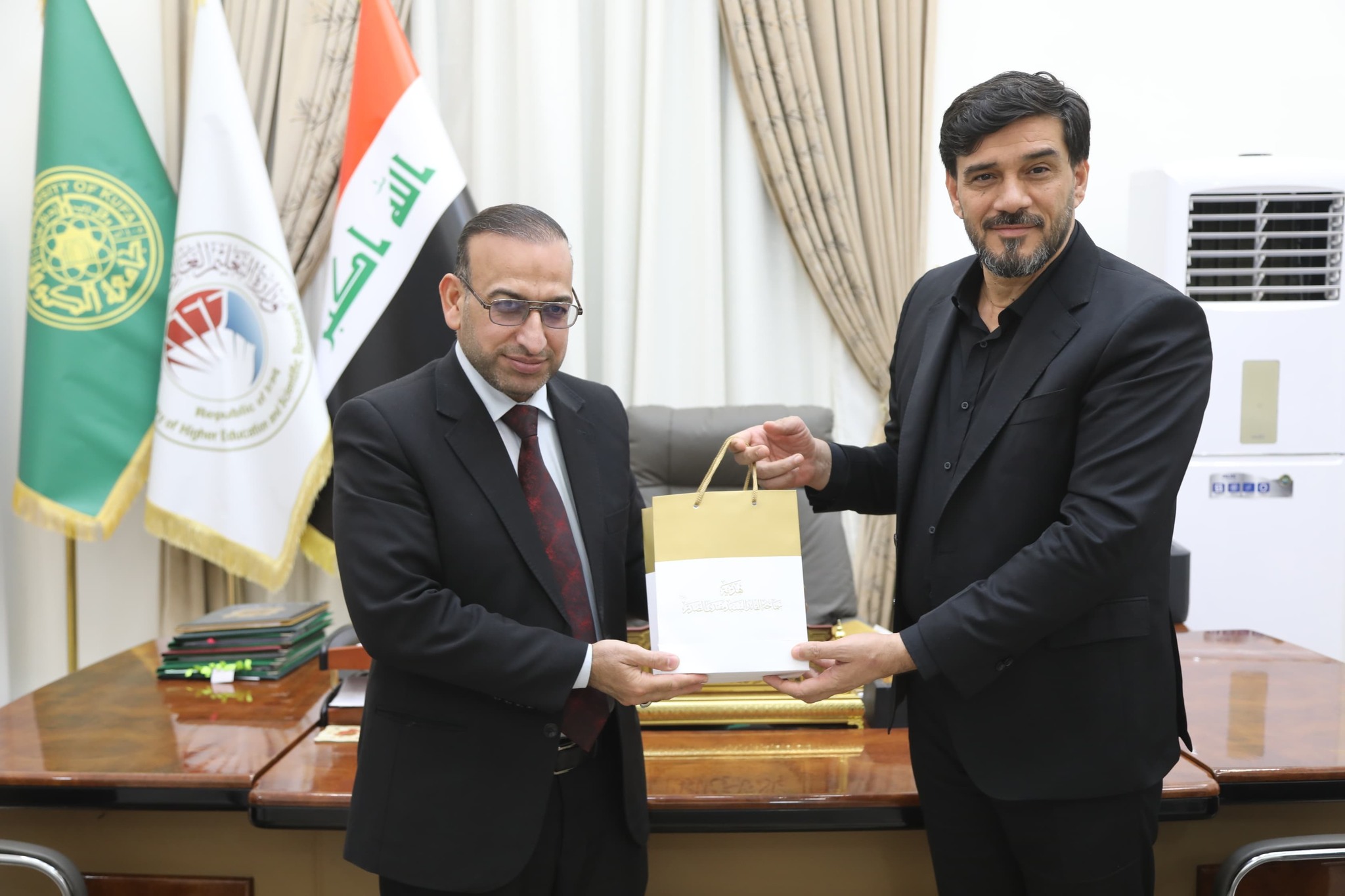 أهدى رئيس التيار الصدري٬ مقتدى الصدر٬ طلبة جامعة الكوفة٬ آلاف النسخ من القرآن الكريم، والكتب الدينية٬ ضمن مبادرة اطلقها الصدر٬ بمناسبة حلول أشهر العبادة المباركة رجب و شعبان و رمضان٬ لدعم المسيرة الفكرية لطلبة عدد من الجامعات. وقال بيان تلقته (الزمان) امس ان (الصدر اهدى الطلبة٬ أربعة الاف نسخة من المصحف الشريف٬ وعدد من الكتب الدينية أهمها مفاتيح الجنان والصحيفة السجادية، ومؤلفات الشهيد السيد محمد صادق الصدر رحمه الله٬ وذلك خلال لقاء جمع رئيس جامعة الكوفة٬ علاء ناجي المولى، ومدير المكتب الخاص للصدر٬ حيدر الجابري)٬ وأعرب المولى عن (إمتنانه وتقديره لمشروع الصدر ، على هذه الإلتفاتة التي عدها تُجسد روح العطاء و المسؤولية تجاه الشباب)٬ مؤكداً ان (هذا الإهداء يمثل رافداً معرفياً و روحياً يسهم في ترسيخ القيم السامية في نفوس الطلبة). على صعيد متصل٬ كرّم الأمين العام للعتبة العسكرية، نافع جميل، رئيس جامعة الكوفة، تثميناً لجهود لمساهمات الجامعة الفاعلة في إنجاح فعاليات المؤتمر العلمي الرابع المنعقد بعنوان سامراء العسكريين بين الشريعة و القانون، بحضور شخصيات حكومية وأكاديمية.