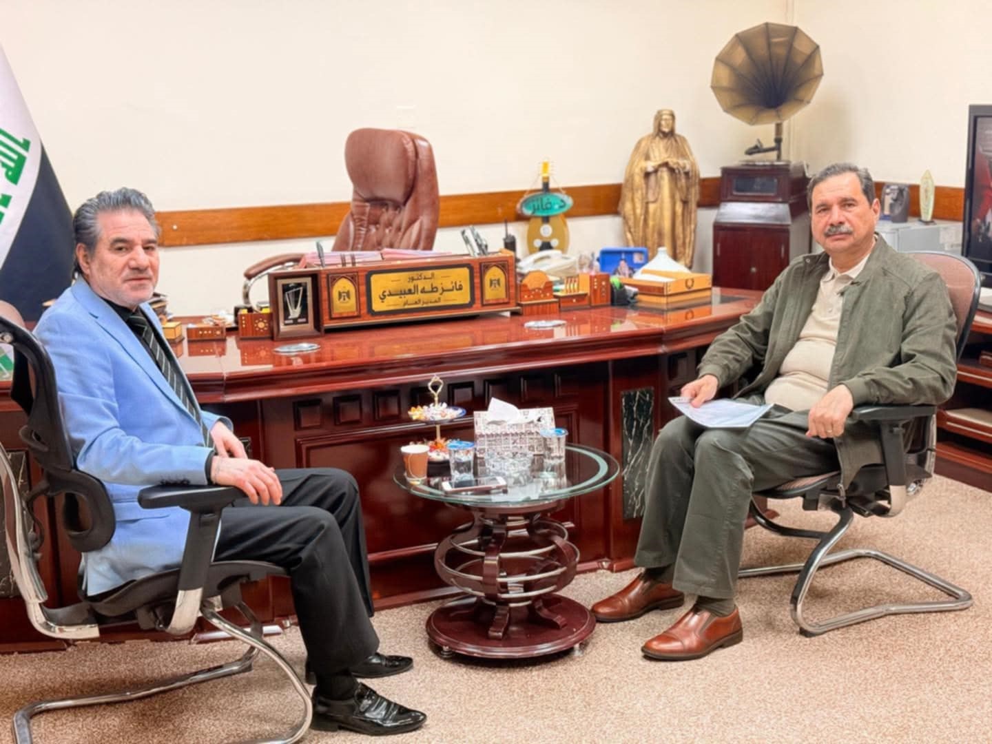 التقى مدير عام دائرة الفنون الموسيقية فائز طه العبيدي ، بالفنان المايسترو نجاح عبد الغفور، أحد الأسماء البارزة في المشهد الموسيقي العراقي.ويأتي هذا اللقاء ضمن سلسلة المبادرات التي تعتمدها الدائرة لتعزيز التواصل مع الفنانين والأحبة والمبدعين، تقديراً لمسيرتهم ودورهم الحيوي في إغناء الثقافة الموسيقية في العراق.وتناول الحوار جوانب متعددة من الواقع الفني والموسيقي، ودور دائرة الفنون في إحياء الهوية الفنية العراقية، وترسيخ حضورها عبر فعاليات وبرامج تسعى إلى دعم الفنانين وتوفير بيئة حاضنة للإبداع.كما استعرض عبد الغفور رؤيته تجاه المشهد الموسيقي الراهن، مستندًا إلى خبرته الطويلة وتاريخه الغني، إذ يعدّ واحداً من الوجوه الفنية التي تركت بصمة واضحة من خلال مسيرة حافلة بالنجاحات والتألق.
