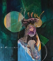 في معرضه الأخير « الصياد» ، تتوسل لوحاته بلغة تشكيلية تقوم على مزج التعبيرية بالتجريد، حيث يترك الفنان مساحة واسعة للتأويل دون أن يقطع خيط التواصل مع المتلقي. تتجاور البقع اللونية العنيفة مع مساحات هادئة، وتتكسّر الخطوط الحادة فوق منحنيات رخوة، ليولد من هذا التضاد إيقاع بصري يشبه نبض القلب وهو يواجه الخطر تارة، ويستسلم للحظات التأمل تارة أخرى.