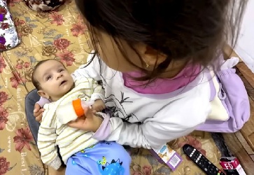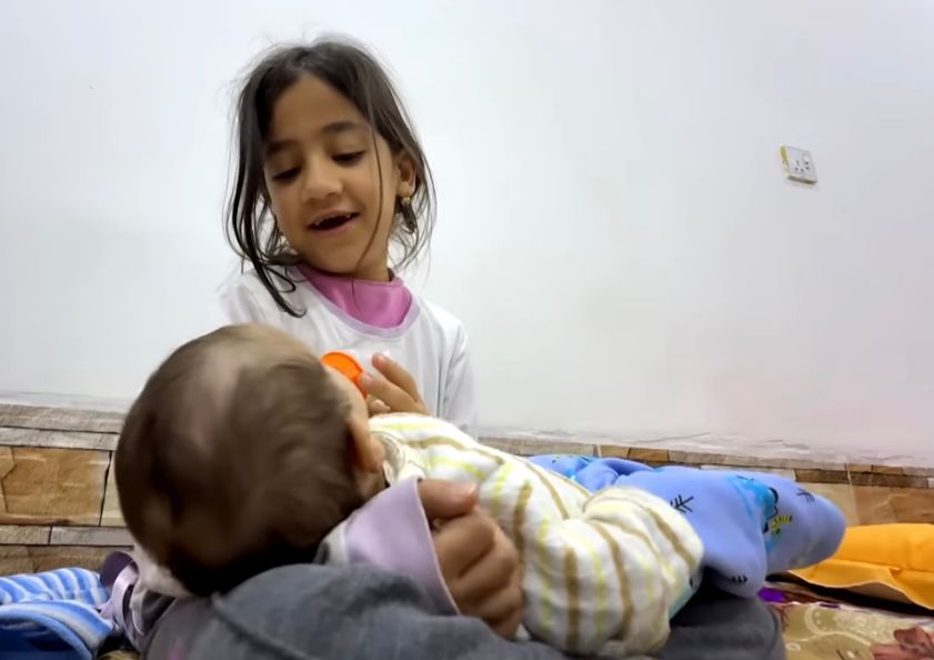 قصة مأساوية تفوق التراجيديا بكل ما تحمل من اهات وعذابات وتتخلص في ان الام ونتيجة الخوف من الفيضانات التي اجتاحت قضاء جمجمال ولشدتها واغراقها اعدادا كبيرة من البيوت والممتلكات ونتيجة خوفها فقد توفيت وتركت اربعة اطفال ولدان احداهم (يونس) بعمر شهر وبنتان وكانت تعمل مدرّسة بعقد وبعد وفاتها اصبحت بنتها ( خندة ) ذات السبع سنوات أماّ لتحل مكانها وترعى يونس ذا الشهر الواحد اضافة الى اخيها واختها الى جانب تحملها مسؤولية البيت من تنظيف واعداد الطعام وتقول خندة فقط اعرف سلق البيض كما وتقوم بمليء المدفأة بالنفط اما والدها فكان عاملاً بأجر يومي ولكن بعد فقد الزوجة لم يستطع مفارقة الابناء وتركهم وحيدا في البيت وفقد مصدر رزقه وتقول الابنة الأم حاليا ( خندة ) هنالك اناس يقدمون لنا المساعدات واحيانا حليب ( يونس ) نحصل عليه عن طريق ( الدّين) لنسدد مبلغه فيما بعد وتضيف خندة ان وضعهم المادي سيء للغاية وكانوا يعتمدون على راتب الأم المعينة بعقد وانهم يسكنون دار ايجار ووالدها لايستطيع توفير مستلزماتهم لانه لايعمل حاليا لانه لايستطيع تركنا لوحدنا في البيت.