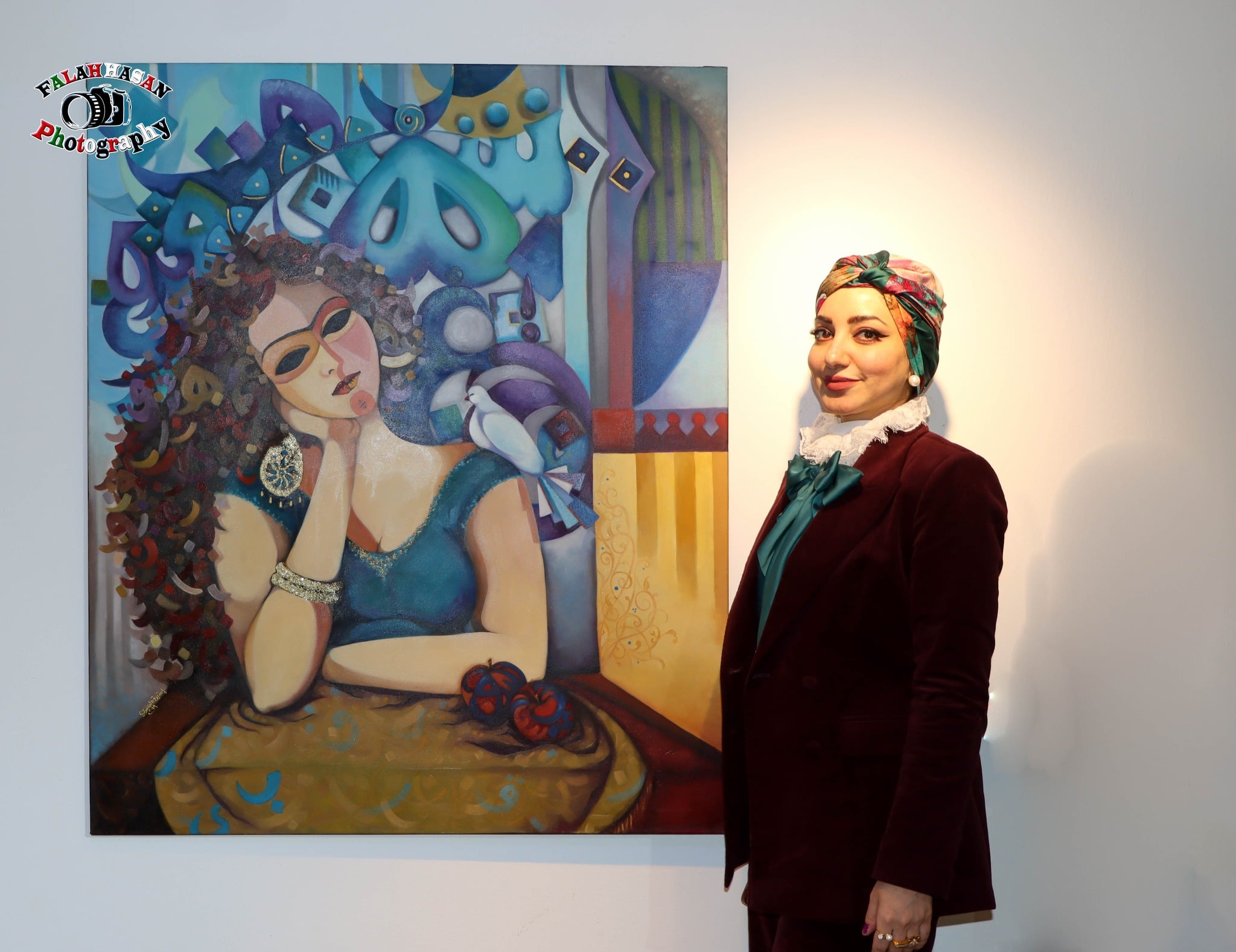 وعن مدى تأثير التيارات الفنية عليها ، اكدت : تأثرت تجربتي التشكيلية بالتيارات الفنية المعاصرة بوصفها فضاءات مفتوحة للتجريب والتجاوز، لا باعتبارها أنماطًا جاهزة للتقليد. فقد انعكس هذا التأثير في التحررمن الشكل الواقعي الصارم، والاتجاه نحو بناء الصورة عبر الرمز، والتكثيف اللوني، وتداخل العناصر البصرية مع الدلالات الفكرية .كما يظهر أثر الفن المعاصر في اعتمادي على تعدد القراءات داخل العمل الواحد، حيث لم تعد اللوحة تسعى إلى تقديم معنى مباشر، بل تفتح المجال أمام المتلقي للمشاركة في إنتاج الدلالة، من خلال الإيحاءات اللونية، وتشظي الشكل، وتداخل الحروف أو الرموز .