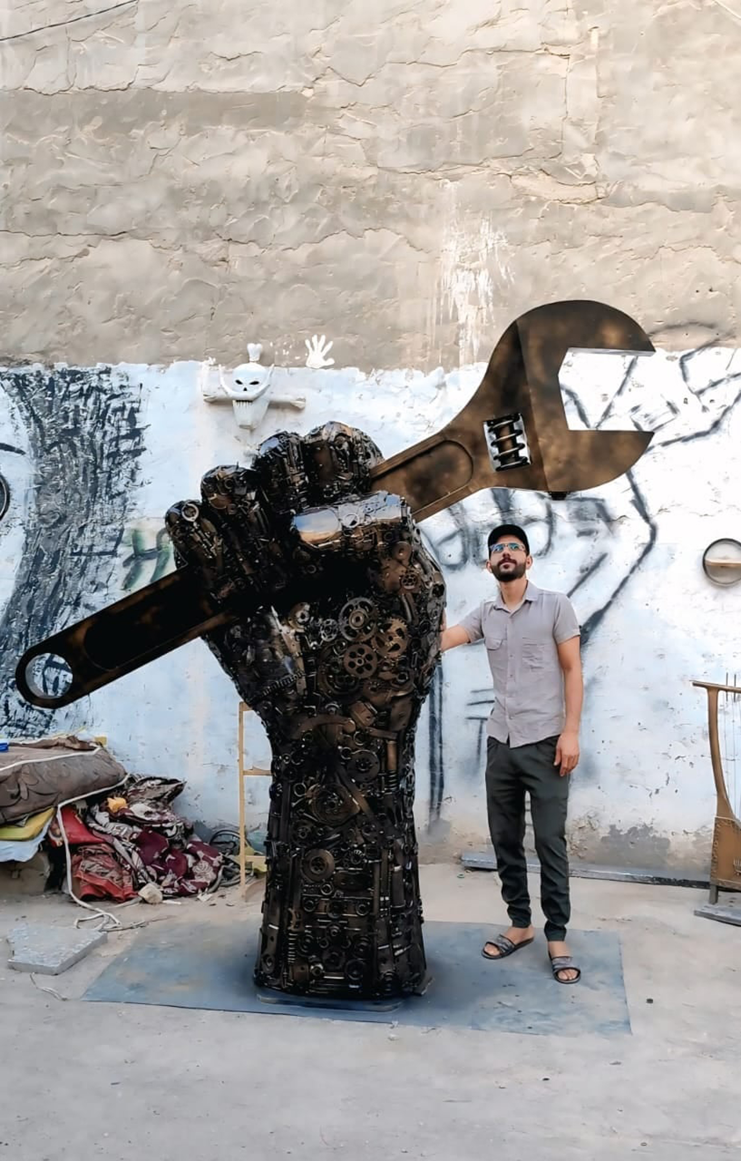 فنان نجفي تعلم فن تطويع الخردة من مخلفات السيارات والدراجات وبقية المواد الاخرى عن طريق مواقع التواصل الاجتماعي وانجز اعمالا متعددة ومتنوعة بهذا الفن والمجال وابدع فيها ووزعت اعماله في عدد من المحافظات العراقية فضلا عن محافظته النجف انه الفنان حسين داود الذي ضيفناه في (الزمان) وعرفنا عن بطاقتة الشخصية وبداياتة حيث قال: حسين داود من النجف مواليد 1995 بدايتي عام 2018 كنت مولعا بعمل اشكال بسيطة من البراغي والنتات ودخلت في كروبات على (فيسبوك) لفنانين اجانب وتعلمت منهم كيفية عمل وبداية كل تصميم وبعدها اصبحت انجز اعمالا باحجام مختلفة تفوق الـ 30 سم وبدات باول عمل لي كان عبارة عن حصان بحجم مترين وبعدها اشتغلت أشياء مختلفة من اطارات السيارات والدراجات بما يقارب خمسة اعمال بعد ذلك عندما نشرت اعمالي على مواقع التواصل الاجتماعي في العام 2023 كان هناك تشجيع كبير ودعم معنوي للاستمرار بالعمل واصبح لدي طموح اكبر واصبحت كل يوم انتج عملا من هذا الفن الممتع وانتجت كثير من الاعمال بافكار وأحجام مختلفه واصبح مصدر دخلي هذا العمل ولدي اعمال بمناطق مختلفة.