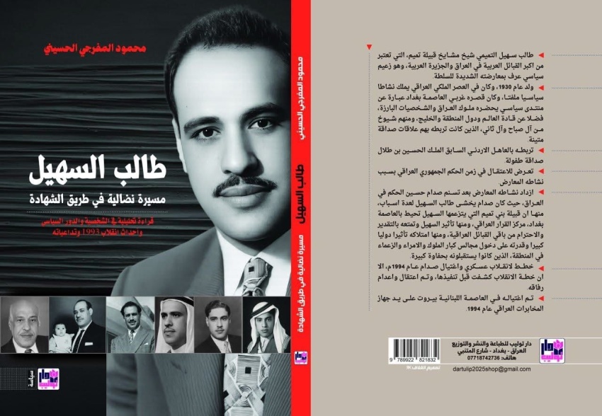 صدر عن دار (توليب) الطبعة الاولى من كتاب: طالب السهيل مسيرة نضالية في طريق الشهادة، للكاتب الباحث محمود المفرجي الحسيني الكتاب الذي احتوى على 235 صفحة تقريبا تناول الارث العشائري العراقي من الدولة العثمانية ومرورا ببناء الدولة العراقية الحديثة، ومدى انعكاس هذا التاريخ على الشخصية السياسية لشيخ مشايخ بني تميم الشهيد طالب علي السهيل، الذي اغتالته مخابرات النظام السابق في بيروت عام 1994، على خلفية تخطيطه لعملية انقلاب واغتيال رئيس النظام صدام حسين.الكاتب لم يستغرق بالجانب التاريخي بقدر استغراقه بالجانب التحليلي في شخصية ومواقف الشهيد طالب السهيل الذي يعد من أكبر الشخصيات المعارضة التي اقلقت النظام السابق، حيث اشارت الوثائق التي نشرت في الكتاب ان صدام نفسه كان يخشى الشهيد السهيل وذلك لعلاقاته العربية والدولية الكبيرة التي كان يتمتع بها.كماعرض الكاتب بعض المتبنيات الخاصة في تأثير العامل الخارجي على دول المنطقة وخاصة العراق، ونفض الغبار عن عمليات الانقلاب التي جرت بالمنطقة والتي كانت بدعم بريطاني امريكي.وأهم ما يميز الكتاب هو الوثائق الصور النادرة التي ربما لم يطلع عليها احد، والتي تبين طبيعة تعامل النظام السابق مع المعارضين للسلطة، ومنها كوبونات النفط التي كانت ثمن اغتيال طالب السهيل.كما تناول الكاتب الازمة الدبلوماسية المتمثلة بقطع العلاقات اللبنانية مع العراق على خلفية اغتيال السهيل، ومواقف بعض الملوك والرؤساء العرب منها، فضلا عن بعض القضايا الاخرى.