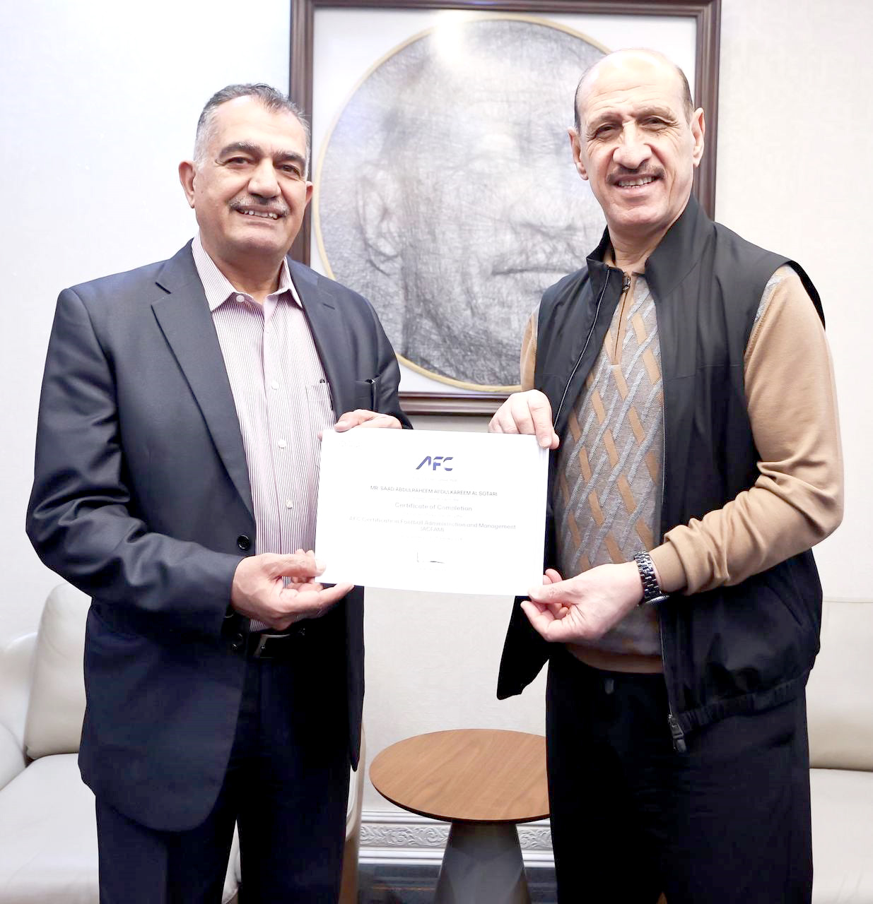 سلّمَ رئيسُ الاتحادِ العراقيّ لكرةِ القدم عدنان درجال،  الشهادةَ الصادرةَ من المركزِ الأكاديميّ للتميُّز في الاتحادِ الآسيويّ لكرة القدم  التابع للاتحاد الآسيويّ لكرةِ القدم AFC للمُحاضرِ سعد عبد الرحيم. وترتبط الشهادةُ في الإدارةِ والتنظيم للدورةِ التي جرت للفترة من 4 كانون الأول 2024 لغاية 18 كانون الثاني 2026.  وتعد هذه الشهادةُ من أهم برامجِ الاتحادِ الآسيويّ لكرة القدم، وهي موجهةٌ للملاكاتِ الإداريّة والفنيّة الراغبة في تطويرِ إدارةِ وتنظيم كرة القدم.