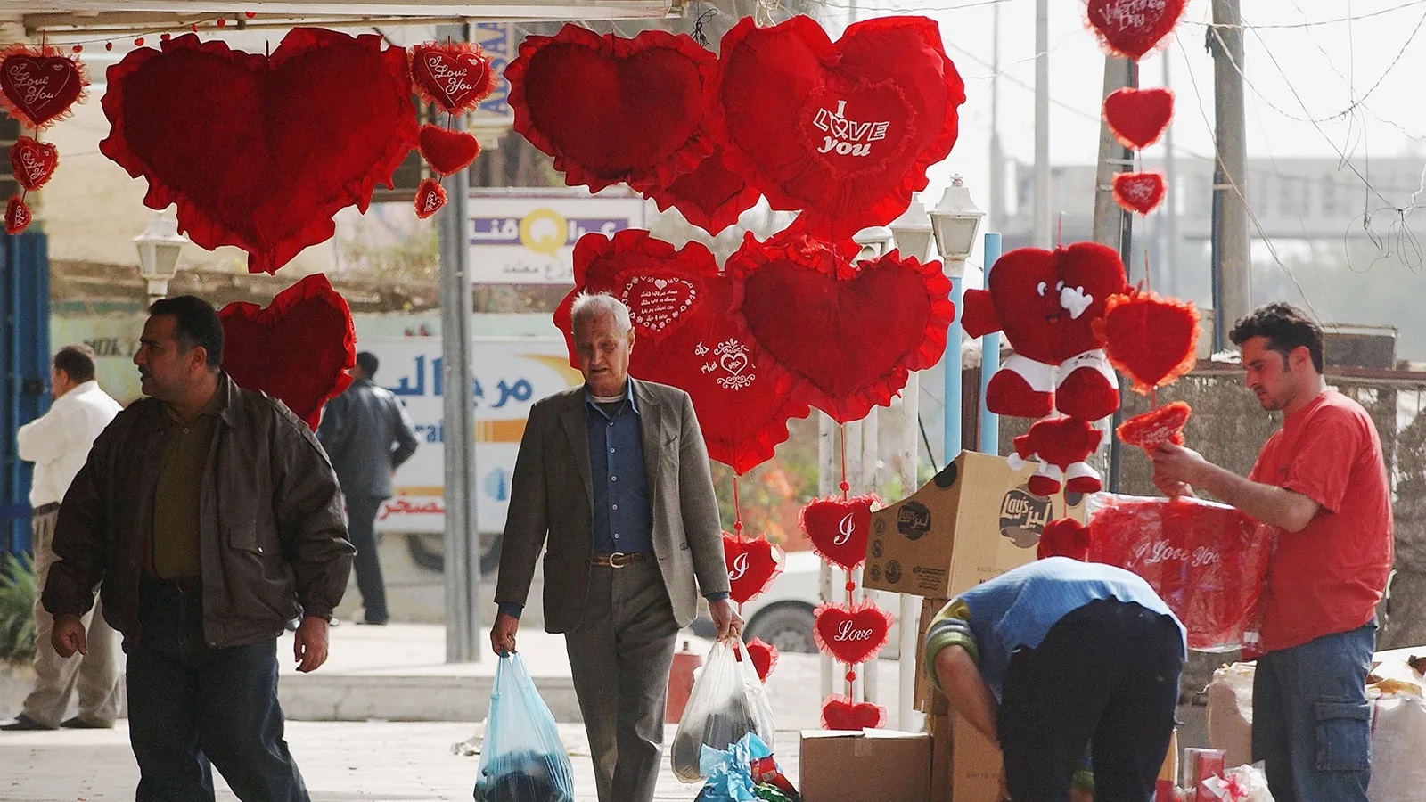 احتفلت امس معظم دول العالم بعيد الحب، وفي العراق إحتفلت بعض المحافظات بهذه المناسبة، وفي بغداد يلاحظ المتجول في اسواق بغداد وتحديدا محال بيع الزهور انها اصطبغت بالون الاحمر وانتشر بيع الدببة بلونها الاحمر والزهور الاصطناعية التي اتخذت شكل قلوب حمر ، فيما اقامت معظم المطاعم والنوادي حفلات بالمناسبة ففي احد النوادي احيا الحفل صلاح حسن واسماعيل فروجي وفي ناد اخر احيا الحفل محمود الشاعري ونبيل الاديب ومحسن الفراتي ،وتبادل العشاق رسائل نصية عبر هواتفهم تعبيرا عن حبهم لبعض ، ولم تقتصر هدايا عيد الحب على العشاق بل الكثير من البناء والاشقاء تبادل الهدايا بهذه المناسبة . فيما ضجت مواقع التواصل الاجتماعي منذ بضعة ايام بالترويج لحلوى وقالب كيك باللون الاحمر ،واشار عامل في محل للحلويات ببغدادان (واجهنا ضغط في الطلبات شبيه بما يحدث في ليلة رأس السنة مع تركيز خاص على «العلب المخملية» التي تحتوي على مزيج من الشوكولاتة والزهور).واشار مراقب للاسواق ان (المشاتل ارتفعت فيها أسعار الورود الحمراء بشكل ملحوظ نظراً للطلب المتزايد).مضيفا (ان الكثير من العوائل البغدادية تخرج للعشاء معاً للتعبير عن المودة الأسرية ولوحظت تجمعات شبابية في المولات لتبادل هدايا رمزية، فيما قام بعض الشباب بزيارة دور الأيتام أو كبار السن لتوزيع الزهور، كنوع من نشر الحب بمعناه الشامل).