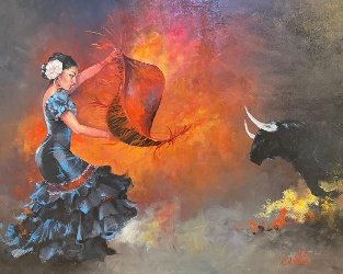 ومن ابرز لوحات المعرض (سيدة الكرمسن) و(الوجه الاخر) و(بصيص) و(روح المكان).