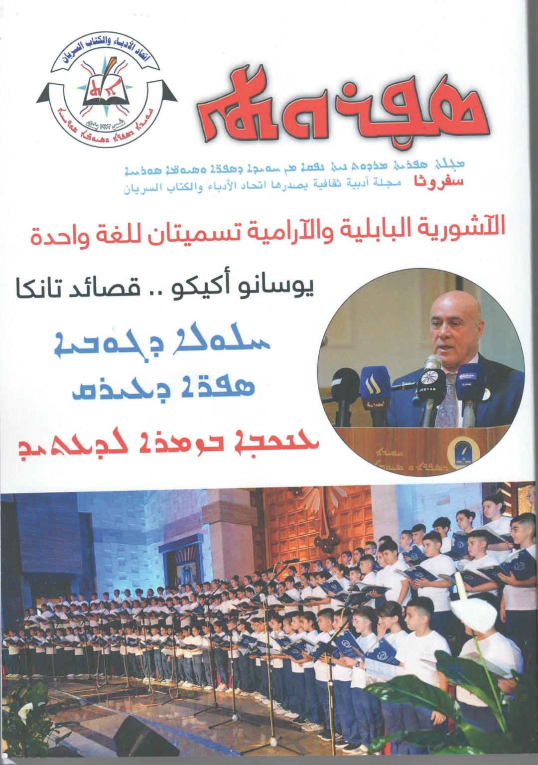 صدر مؤخرا عدد جديد من مجلة سفروثا المجلة الادبية  الثقافية التي يصدرها اتحاد الادباء والكتاب السريان  وباللغات السريانية  والعربية والكردية والانكليزية حيث جاء العدد حافلا بالمواضيع التي اضاءت لنشاطات وفعاليات الاتحاد اضافة لابراز كتابه للاسهام بعوالم الثقافة ومشهد الادب السرياني  وهو المجلد الخاص بعام 2025  وتصدر غلاف العدد صورة لرئيس اتحاد الادباء والسريان روند بولص  اضافة  لصورة اخرى  لنشاطات للاطفال وهم يؤدون احدى الفعاليات  كما حمل الغلاف الاول عناوين عدة باللغتين اعربية والسريانية من بينها  الاشورية  البابلية والارامية  تسميتان  للغة واحدة  وعنوان اخر هو يوسانو اكيكو .. قصائد تانكا  وجاء القسم السرياني حافلا بالمواضيع حيث تقدمها كلمة رئيس اتحاد الادباء  بمناسبة  ذكرى اكيتو  اضافة للتوصيات التي خرج بها مهرجان اكيتو المقام هذا العام ببلدة برطلة في سهل نينوى بينما حفلت المقالات الاخرى بطابع تاريخي  اضافة لقصائدوكتابات  كتبها شعراء وادباء باللغة السريانية ومنهم اميرة توما وكريم اينا وعادل دنو وفريدة ميخائيل ويوحنا دانيال ووعد الله ايليا والخوري  قرياقوس البرطلي وغسان شعبو وابراهيم خضر وابراهيم كولان وابلحد ياكو وامير بولص عكو وبروين شمعون و بسمة الساعور وجميل فرنسيس وسمر صومو وعبد الله نوري وغزوان صباح وفائق بلو وكريم اينا ومنال ابونا ونوئيل الجميل وهرمز موشي وهناء قاشا ووليد متوكا واما القسم العربي من المجلة فتضمن الكلمة الافتتاحية لاتحاد الادباء السريان بمناسبة مهرجان اكيتو وكتب الاديبين نمرود قاشا وبهنام شمني عن المهرجان وما يمثل اقامته في بلدة برطلة هذا العام  اما الكاتب يوارش هيدو فكتب  عن الاشورية  البلية والارامية بكونهما  تسميتان للغة واحدة فيما تساءل الكاتب ابرم شبيرا عن  موقع الاشوريين  وكنيستهم  من مجمع نيقية  في ضوء  مرور 1700 سنة  على مجمع نيقية  المسكوني  لعام 325كما كتب كريم اينا ورقة نقدية  تجاه مقتطفات من  الشعر السرياني  لعدد من شاعرات  منطقة سهل نينوى بينما ترجم  بينامين  يوخنا  تجربة  لشاعرة يابانية تدعى  يوسانو  اكيكو  اما الدكتور  يوخنا مرزا الخامس  فقام  بترجمة قصص قصيرة جد  وغامضة جدا  من فرانس كافكا وابرز  الناقد صباح هرمز  دراسة نقدية  بشان التناص والعالم الموازي  في باب الطباشير لاحمد سعداوي  كما استعرض الدكتور بهنام عطا الله كتاب يوحنا بيداويد المعنون  سفر بلك باعتباره وثيقة تشير  للاضطهادات  والمذابح والمجازر التي  ارتكبتها  الدولة العثمانية بحق المكون المسيحي بينما  استعرض الكاتب طالب زعيان  كتاب بغديدي  في الستينات كما عشتها  للباحث حنا عبد الرحمن  الخياط وحمل العدد لقاءا اجراه الاعلامي سامر الياس سعيد مع  الكاتب والمؤرخ نبيل دمان تضمن محاور عن مؤلفاته وما تمثله له بيئته التي انحدر منها وهي بلدة القوش وتلا تلك المواضيع سلسلة من الاخبار والفعاليات التي جرت من بينها احتفال  الادباء السريان  بالوطن بعيده  وانشطة خاصة اجراها الاتحاد  كما حفل القسم الكردي بسلسلسة من المواضيع  اضافة للقسم الانكليزي  من المجلة .
