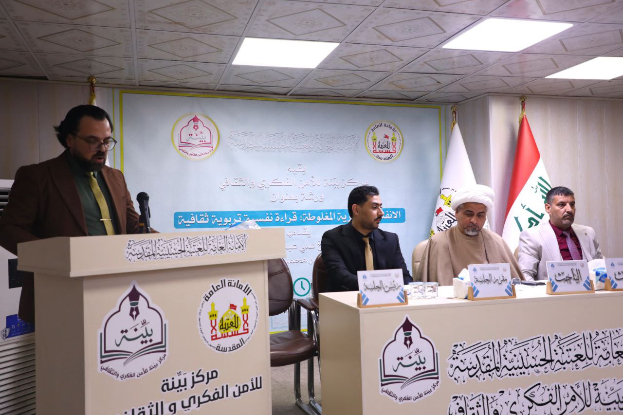 نظّم مركز توعوي، في كربلاء، ورشة فكرية بعنوان الانفتاح والحرية المغلوطة.. قراءة نفسية تربوية ثقافية، بمشاركة عدد من التدريسيات والتربويات في المحافظة. وركزت الندوة التي اقامتها ادارة مركز بيّنة للأمن الفكري والثقافي، التابع الى العتبة الحسينية، على (أبرز المفاهيم التي تُطرح في الساحة العراقية، تحت مسميات الحرية والانفتاح)، وتطرق المشاركون الى (ما وصفوه ببعض الطروحات التي لا تنسجم مع القيم المجتمعية والثقافية، فضلاً عن تأثير بعض البرامج والممارسات على المجتمع، وتبريرها تحت شعار الحرية الشخصية)، وأكد مدير المركز، علي القرعاوي خلال الورشة ان (الحرية لا يمكن أن تنفصل عن الضوابط الأخلاقية والقيم الأصيلة للمجتمع).