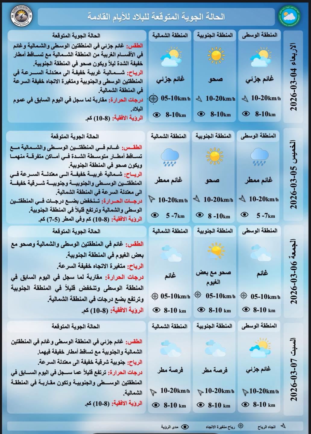 الأنواء: أمطار في الوسط والشمال إبتداءً من غد