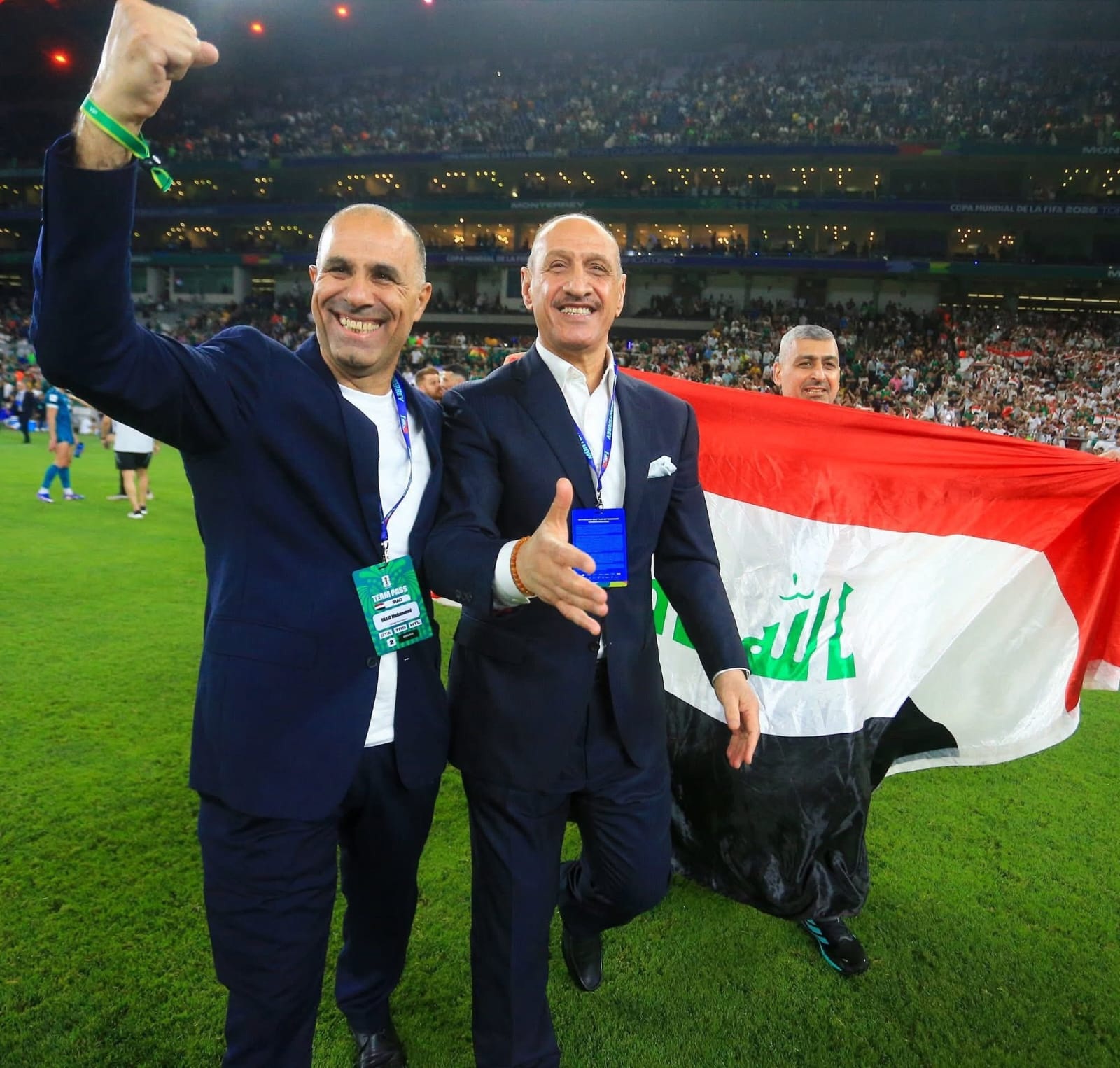 قاد ايمن حسين والأسماء والنجوم الذهبية المنتخب الوطني لكرة القدم ا.لى المجد العالمي بالهدف الذي حسم فيه التاهل الى نهائيات كاس العالم الصيف المقبل في امريكا وللمرة للثانية في تاريخه بعد الفوز التاريخي على منتخب بوليفيا بهدفين لواحد في مواجهة مثيرة في نهائي الملحق العالي في المباراة التي جرت في صباح أمس في المكسيك الانجاز الذي انتظره الشعب العراقي لاكثر من 40 عام وسط فرحة جنونية امتدت من ملعب مونتيري الى كل بيوت وقرى وجبال. واهوار العراق وسيلعب الوطني في المجموعة التاسعة الى جانب فرنسا والسنغال والنروج .