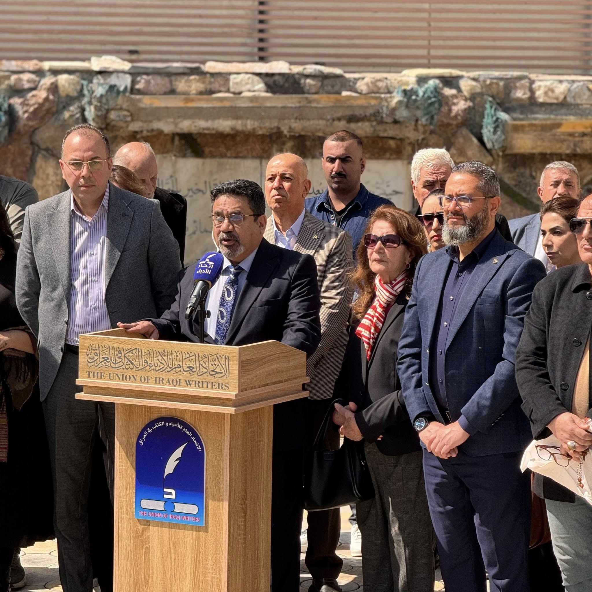 نظّم الاتحاد العام للأدباء والكتّاب في العراق، في مقره العام بالعاصمة بغداد، وقفة احتجاجية عبّر خلالها عن إدانته للاعتداءات التي تتعرض لها البلاد، مؤكداً دعمه للموقف الوطني الرافض للتصعيد، وذلك بحضور جمع كبير من الأدباء والمثقفين. وأكد المشاركون، في بيان رسمي، تلقته (الزمان) امس ان (هذه الوقفة تأتي لتسجيل موقف وطني وإنساني يستنكر الاعتداءات التي تستهدف أبناء العراق وقواته المسلحة وأراضيه)٬ مشددين على (ضرورة دور النخب الثقافية في الدفاع عن سيادة البلاد وترسيخ قيم السلام)٬ ودعا البيان إلى (توحيد كلمة المثقفين ومواقفهم دعماً للعراق، والعمل على صون كرامته في ظل التحديات الراهنة، بما يعزز وحدة الصف الوطني ويؤكد رفض جميع أشكال التصعيد).
