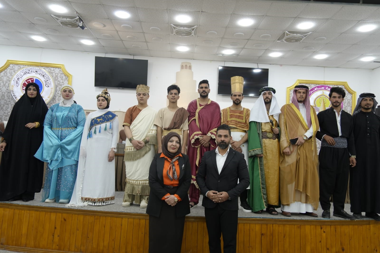 نظّم قسم التاريخ في كلية التربية للعلوم الإنسانية بجامعة سامراء مهرجانًا ثقافيًا بعنوان «الحضارات العراقية بين الذاكرة والهوية»، بحضور رسمي وأكاديمي ، في فعالية جسّدت الاعتزاز بالإرث الحضاري للعراق، وسعت إلى ترسيخ الوعي بالهوية الوطنية في الأوساط الجامعية.استُهلّ المهرجان بعزف النشيد الوطني وتلاوة آيات من القرآن الكريم، و ألقى مساعد رئيس الجامعة للشؤون الإدارية زياد طارق إبراهيم كلمة أكد فيها(أهمية استحضار التاريخ العراقي بوصفه ركيزة أساسية لبناء الحاضر). فيما قدّم معاون العميد للشؤون الإدارية بدر لفته نجم كلمة أشار فيها إلى دور المؤسسات الأكاديمية في صيانة الذاكرة الوطنية، تلتها كلمة رئيس قسم التاريخ عمر ساجد مخلف التي ركّزت على مسؤولية الأقسام العلمية في تعميق الانتماء الحضاري لدى الطلبة. وتضمّن الافتتاح عرضًا مرئيًا وثّق مسيرة الحضارات العراقية عبر العصور.وشهد المهرجان عرضًا مسرحيًا رئيسًا بعنوان «موكب الخالدين»، جسّد تسلسل الحضارات العراقية من خلال شخصيات تاريخية تمثيلية، عكست عمق الإرث الحضاري واستمراريته عبر الأزمنة، في لوحة فنية عبّرت عن تواصل التاريخ وتجدده.وتضمّن البرنامج ندوة علمية بعنوان «الهوية الحضارية ودورها في بناء الوعي المعاصر»، قدّمها الدكتور عادل محمد حسين والأستاذ المساعد مهند سلطان علي، بيّنا فيها أبعاد الهوية الحضارية وانعكاساتها على تشكيل الوعي الجمعي، مع طرح رؤى تحليلية حول دور التاريخ في مواجهة تحديات الحاضر. من جهة أخرى، تضمّن المهرجان معرضًا للصور وثّق محطات بارزة من تاريخ العراق وحضاراته المتعاقبة، ما أتاح للحضور الاطلاع على شواهد بصرية تعزّز الوعي التاريخي وتربط الماضي بالحاضر.واختُتمت الفعاليات بلوحة فنية بعنوان «العراق الموحّد»، جسّدت وحدة الشعب العراقي عبر دخول الطلبة بأزياء تمثّل مكوّناته المختلفة، وصولًا إلى تشكيل خريطة العراق على المسرح، مع وضع مجسّم للخريطة في مركزه، على أنغام موسيقية وطنية مؤثرة، في رسالة واضحة عبّرت عن الوحدة والتنوّع والامتداد الحضاري.