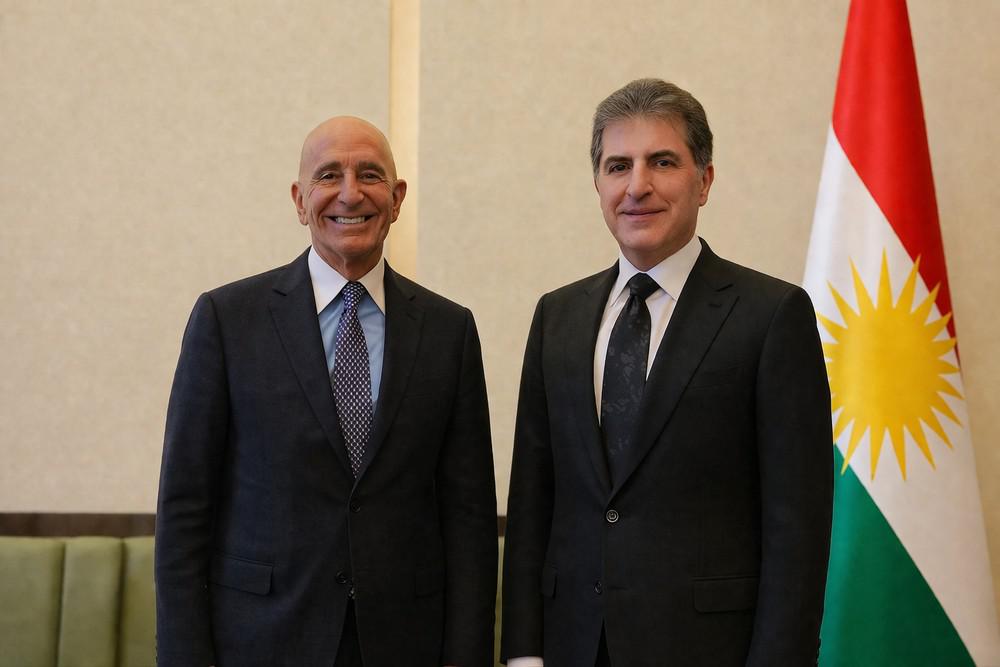 بحث رئيس إقليم كردستان نيجيرفان البارزاني، مع المبعوث الأمريكي الخاص إلى سوريا وسفير الولايات المتحدة لدى تركيا توم باراك، النزاع العسكري الذي شهدته المنطقة طيلة 40 يوماً قبل إعلان وقف إطلاق النار، وتداعيات ذلك على العراق بما فيه الإقليم.