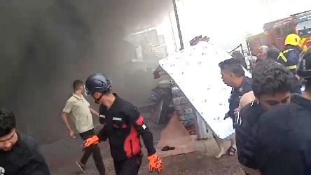 إخماد حريق معمل ومحال لبيع الإسفنج قرب ساحة عدن